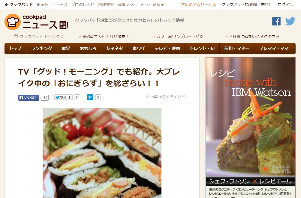 クックパッドニュースでおにぎりについての記事が掲載されました。