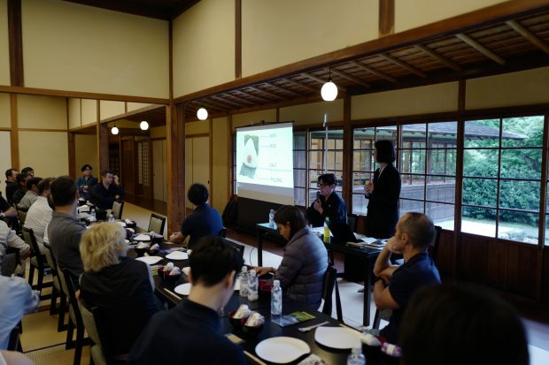 その後は一堂が会して、おにぎりセミナーがスタート。おにぎり協会代表の中村祐介がおにぎりの歴史や日本の食文化について話をしました。