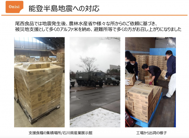 食品の観点から話題を引き取ったのは、尾西食品の取締役営業本部長 栗田雅彦さんです。中村さんはまず、商品が防災から始まったものなのかを尋ねました。