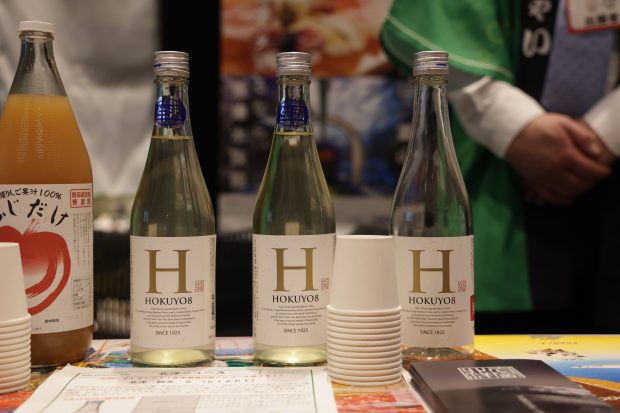 ブースでは魚津のりんごから採取した酵母を使用した人気の低アルコール純米酒の試飲も行われていました。